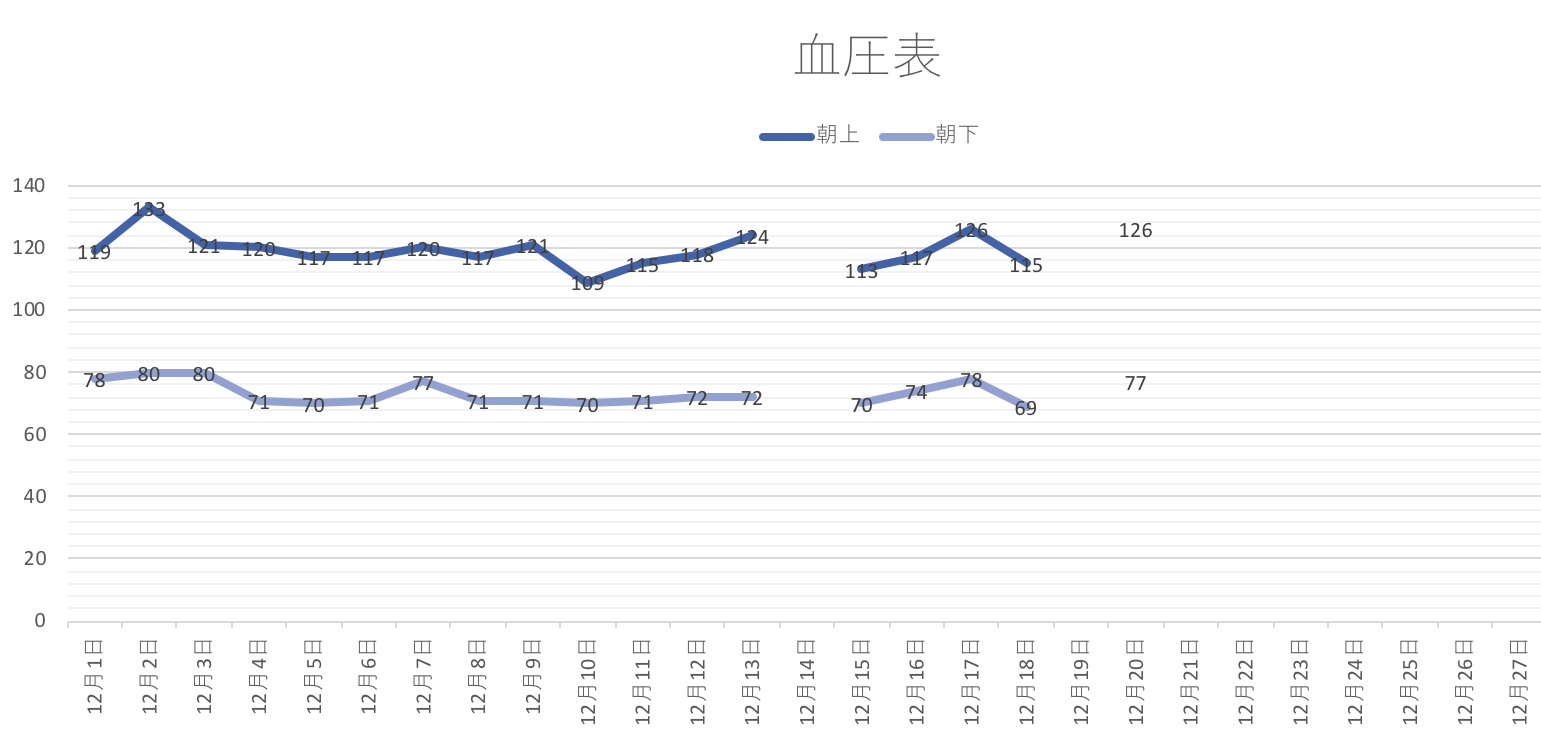 今日も超合格点!!循環器内科の先生曰くの「125/80未満目標!」内から1ハミ出ましたがまあいいでしょう。最近寒いから仕方ないです。そして引き続き生後半年の息子が夜よく起きるので、寝不足です。